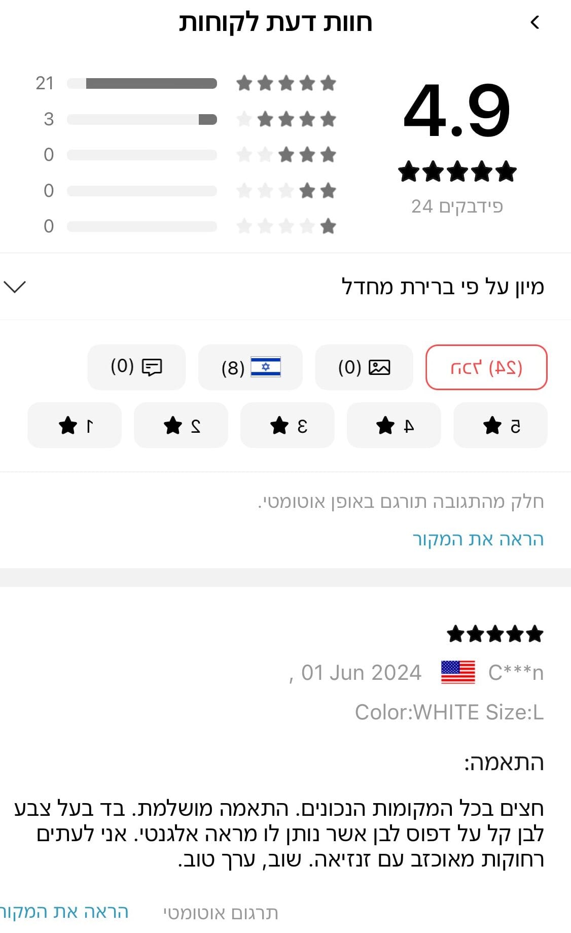 תמונה אלי אקספרס בעברית בפלאפון
